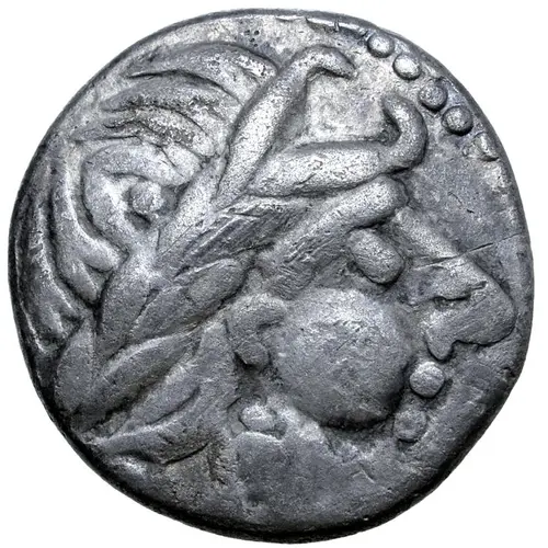 | Obverse description | Celticised, laureate and bearded head to right. |