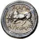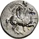 | Obverse description | Armored cavalryman, wearing helmet, holding couched lance in his right hand and with his cloak flowing back from his shoulders, riding horse prancing to right |