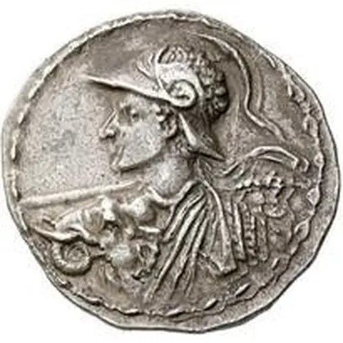 | Opis awersu | Heroic Helmeted Bust of King with spear in hand. |