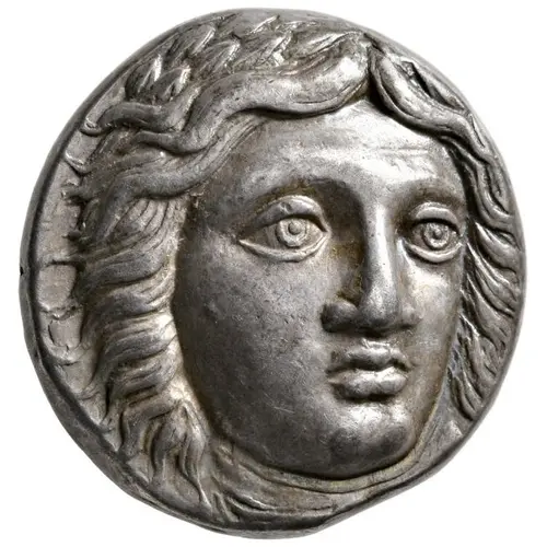 | Obverse description | Laureate head of Apollo facing slightly to right, with drapery below. |