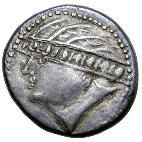 | Reverse description | Horseman to right, brandishing spear in right hand; sunburst below horse, NEMET (partially ligate) below. |