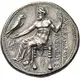 Zeus Seated left; holding eagle in right hand and sceptre in left; in left field, monogram, and below the throne, laurel sprig. |