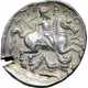 | Descrizione del rovescio | Warrior on horse rearing to right, spearing enemy who defends himself with raised shield; ΠATPAOY around. |