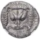 | توضیحات پشت سکه | Forepart of bull facing right, bridled, olive-branch behind, magistrate name above, monogram below, all within incuse square. |