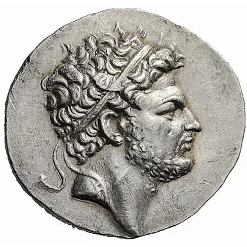 | Reversbeschreibung | Eagle with spread wings standing right on thunderbolt. Above, Φ, to right, monogram of ΑΥ and between legs, monogram of ΑΝ. All within oak wreath a a plow below |