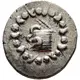 | Descrizione del dritto | Cista mystica with serpent; all within ivy wreath. |