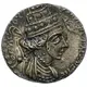 Diademed bust left with long and tapering bead, wart on brow, short hair, ear and earring visible, wearing spiral torque, flying Nike in front, year date BIT (312 SEM) set in diadem ends, all flanked by two-line inscription BACI??OC BACI??ON. |