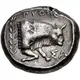 | Description du revers | Forepart of bull right; magistrate name above, olive branch to left, ΣA below; all within shallow incuse square. |