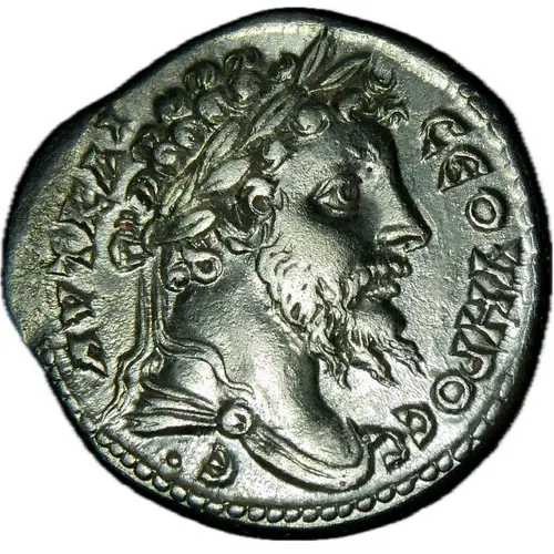 | Aversbeschreibung | Laureate and draped bust of Septimius Severus, right, seen from front. |