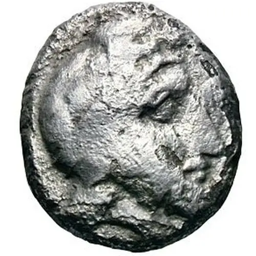 | توضیحات پشت سکه | Incuse square, within which ΒΑΣΙΛΕΩΣ, the king bearbed, crowned, kneeling right. Holding bow in left, spear in right; infield left galley downwards. |
