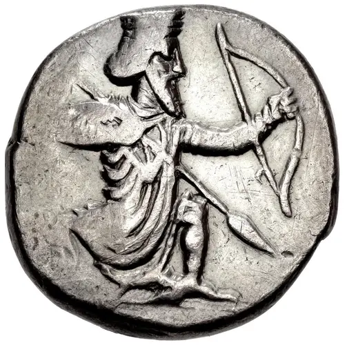 | Obverse description | Persian king, wearing kidaris and kandys, in kneeling-running stance right, holding spear in right hand, bow in left |