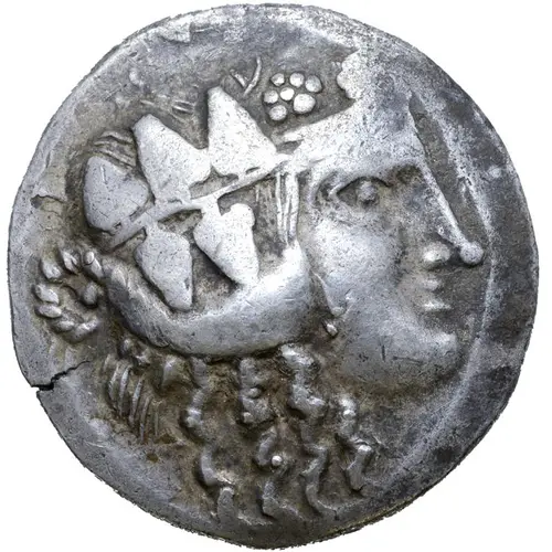 | Obverse description | Celticised head of Dionysos to right, wearing ivy wreath. |