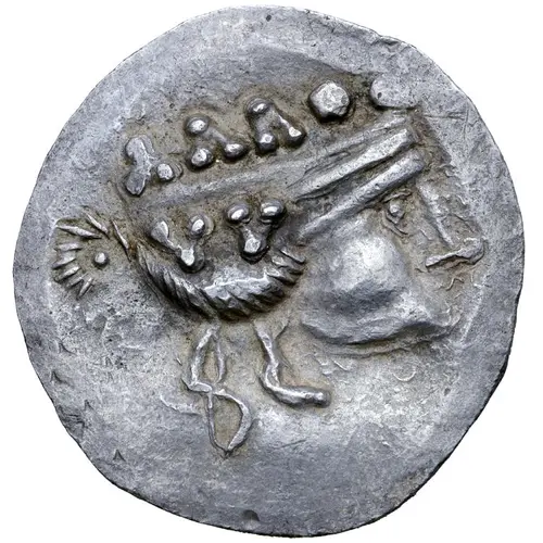| Obverse description | Celticised head of Dionysos to right, wearing ivy wreath. |