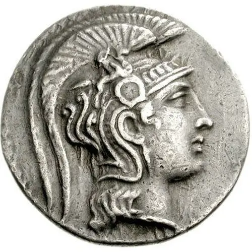 | Mô tả mặt trước | Helmeted head of Athena right. |