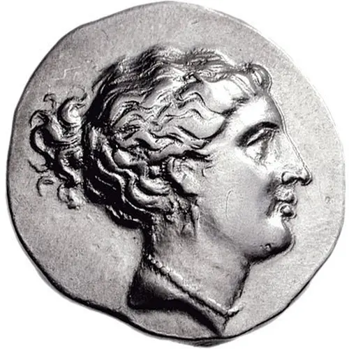 | Obverse description | Head of Aphrodite facing right, hair tied at back and wearing single-pendant earring and necklace |