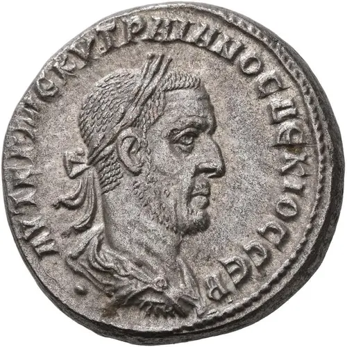 | Ön yüz açıklaması | Bust of Emperor Trajan Decius facing right, laureate, draped, and cuirassed. One pellet below the neck. |