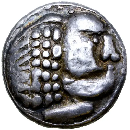 توضیحات روی سکه Celticised, bearded head to right, wearing three-strand pearl diadem.