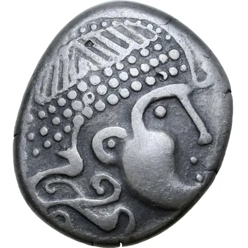 | Obverse description | Celticised, beardless and pearl-diademed head to right. |