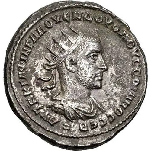 | Описание аверса | Radiate and draped bust of Volusian, right, seen from front. Dot (s) below bust. |