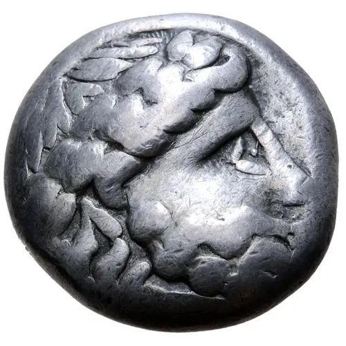 | Obverse description | Celticised, laureate and bearded head to right. |