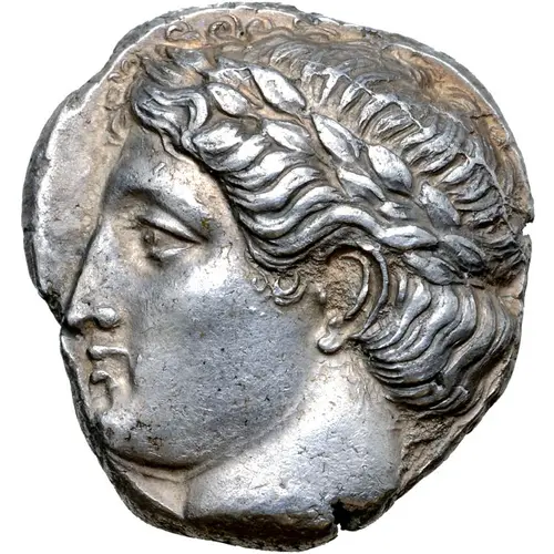 | Descripción del anverso | Laureate head of Apollo facing left. |