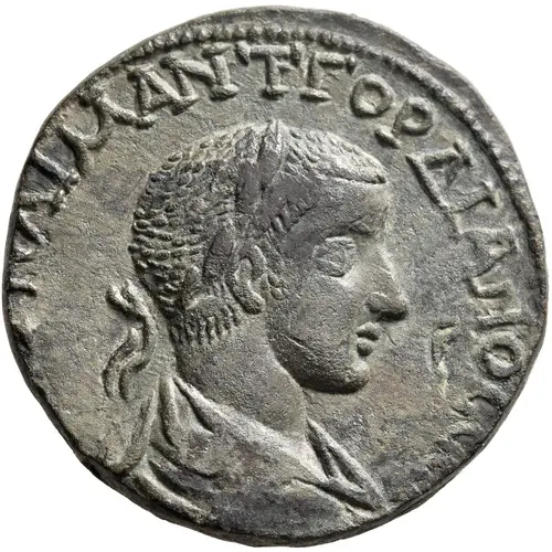 ΑΥ ΚΑΙ Μ ΑΝΤ ΓΟΡΔΙΑΝΟϹ ϹΕ (Translation: Emperor Caesar Marcus Antoninus Gordianus Augustus) |