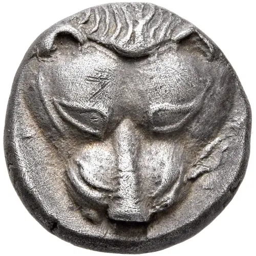 | Obverse description | Facing head of a lion. |