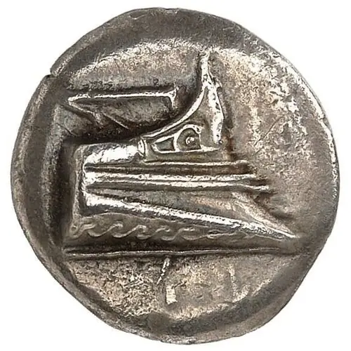 | Reverse description | Stern of galley left within incuse square. |