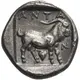 | Popis rubu | Goat standing right; between its legs, ivy-leaf. |
