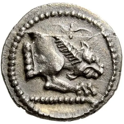 | Obverse description | Forepart of lioness to right, head seen from turned toward her right and seen from above. Above, floral ornament |