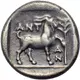 | Popis rubu | Goat standing right; palm tree to right; all within incuse square. |