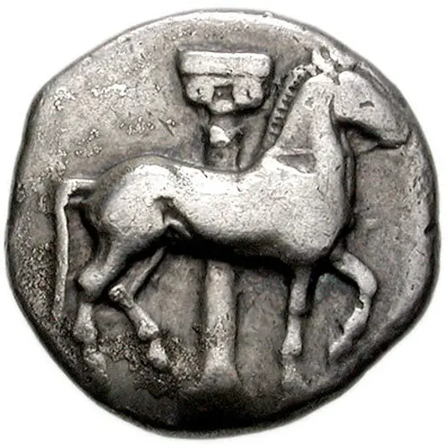| توضیحات روی سکه | Horse springing right with an Ionic column in the background |