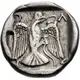 | توضیحات پشت سکه | Eagle flying, holding serpent in beak and all within incuse square |