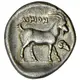| Reverse description | Goat standing right; to right, head of ram right; all within shallow incuse square with rounded corners. |