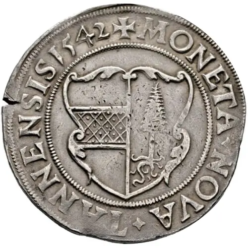 ✠ MONETA ᛭ NOVA ᛭ THANNENSIS 1642 (Translation: New coinage of Thann.) |