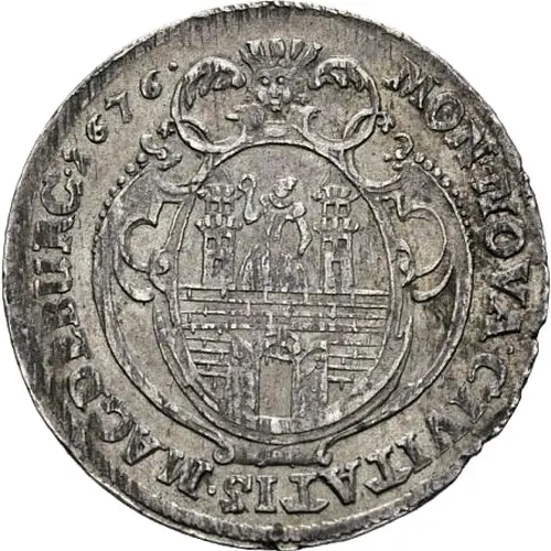 | Aversbeschreibung | City arms in oval with rococo styled frame, cherub above. |