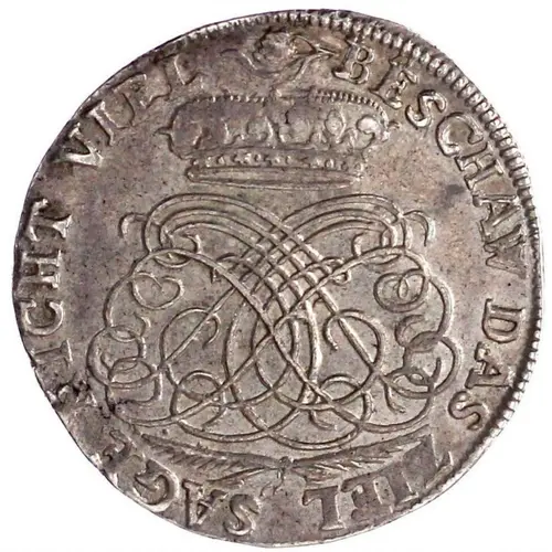 ✿MONETA·NOVA·ARG· DIOEC.QVEDLINB: HI C 16 76 (2/3) (Translation: New Silver Coin of the Abbey of Quedlinburg.) |