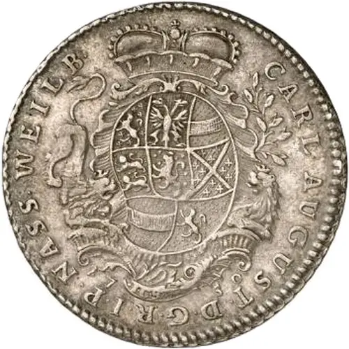 | Leyenda del anverso | CARL. AUGUST. D.G. R. I. P. NASS. WEILB. |