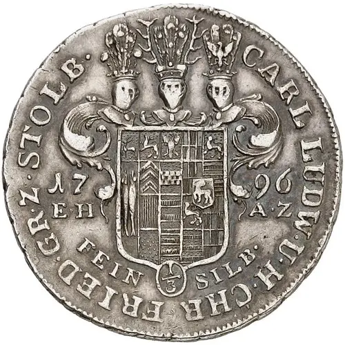| Obverse lettering | CARL LUDW. U. H. CHR. FRIED. GR. Z.STOLB. 1796 E H A Z FEIN SILB 1/3 |