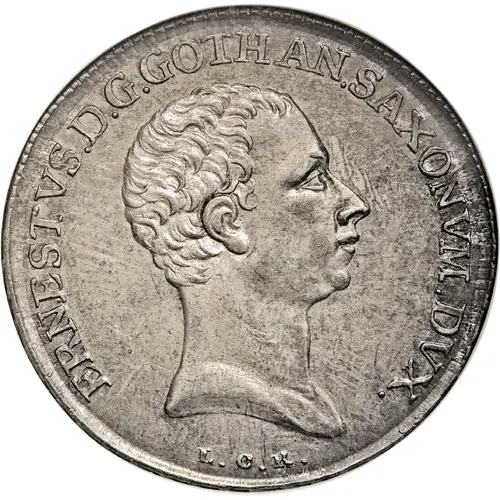 | Obverse lettering | ERNESTVS.D.G.GOTH AN.SAXONVM.DVX. L.C.K. |