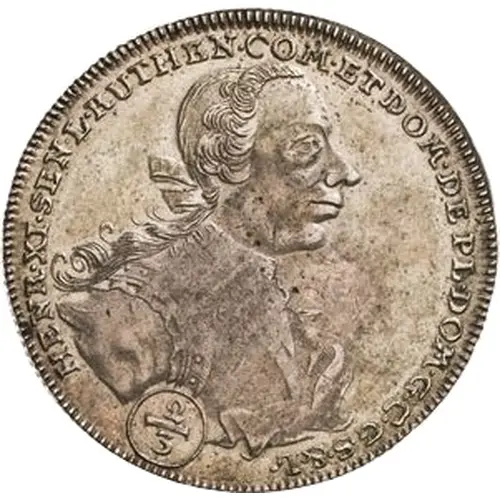 Artistry: While the specific engraver is often unrecorded, the coin's design reflects late Baroque and early Rococo aesthetics common in German states. The obverse typically presents a finely rendered, draped or armored bust of Count Henry XI, often with a powdered wig and intricate detailing. The reverse displays the elaborate crowned coat of arms of Reuss-Greiz, with the denomination and "AUSBEUTE" inscription elegantly integrated. This artistry balances regal authority with decorative flourish.