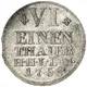 | Reverse lettering | VI EINEN THALER H. H. L. L. M. 1758 |