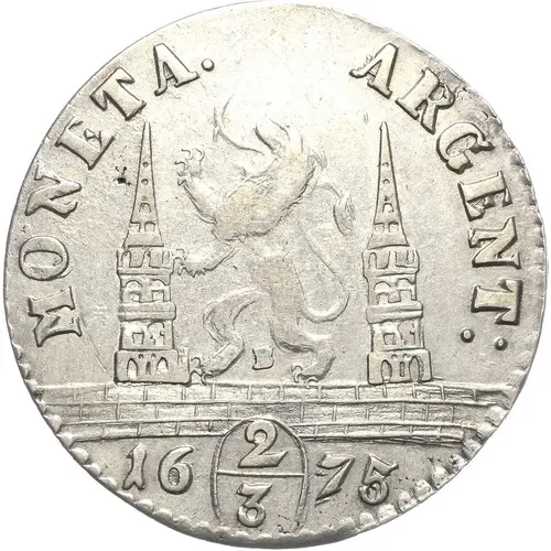 | Obverse description | Rampant lion to left on wall between 2 towers, legend begins at lower left, value (2/3) divides date in exergue. |