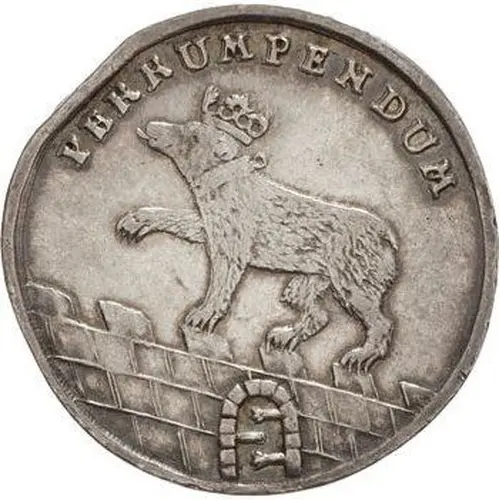 | Obverse description | Crowned bear walking left on wall |