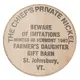 | Chữ khắc mặt sau | THE CHIEF`S PRIVATE NICKEL BEWARE OF IMITATIONS MINTED IN VERMONT 1987 FARMER`S DAUGHTER GIFT BARN ST. JOHNSBURY, VT |