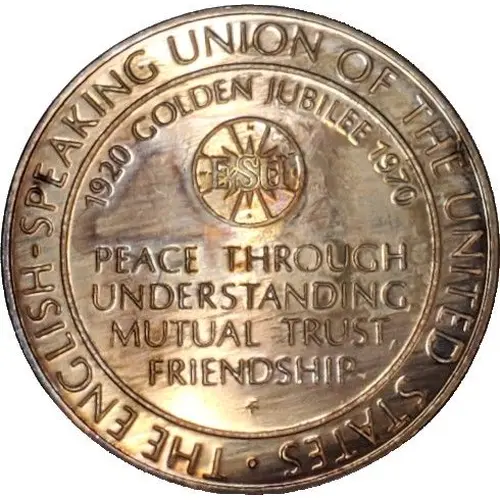 | Obverse lettering | THE ENGLISH - SPEAKING UNION OF THE UNITED STATES 1920 GOLDEN JUBILEE 1970 ESU PEACE THROUGH UNDERSTANDING MUTUAL TRUST FRIENDSHIP FM |