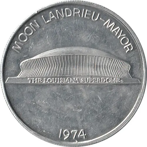 | Obverse lettering | MOON LANDRIEU-MAYOR THE LOUISIANA SUPERDOME 1974 |