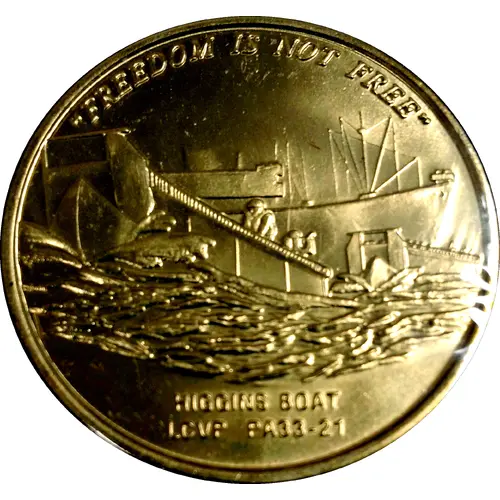 | Obverse lettering | `FREEDOM IS NOT FREE` HIGHS BOAT LVCP PA 33-21 |