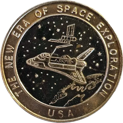 The STS-95 mission insignia was designed by the crew, and evokes the scientific, engineering and historic elements of the flight. It depicts a stylized blue Space Shuttle with yellow, red, and blue streamers coming from its stern that represent the global benefits of the mission`s science experiments and the solar science objectives of the Spartan satellite. A small Mercury space capsule is depicted orbiting the Shuttle, and the red streamer extends up towards the center of the Shuttle to form a `7`. The capsule and the number seven are in reference to Glenn`s historic association with the Mercury Seven astronauts and their spacecraft: all of the crewed Mercury spacecraft had `7` as part of their name. The mission payloads—microgravity material science, medical research for humans on Earth and in space, and astronomy—represent three major scientific fields and are symbolized in the insignia by rocket plumes. |