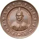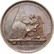 Victory seated to the left, holding wreath and inscribing pyramid reading. Serpent below, mosque in background to left. |